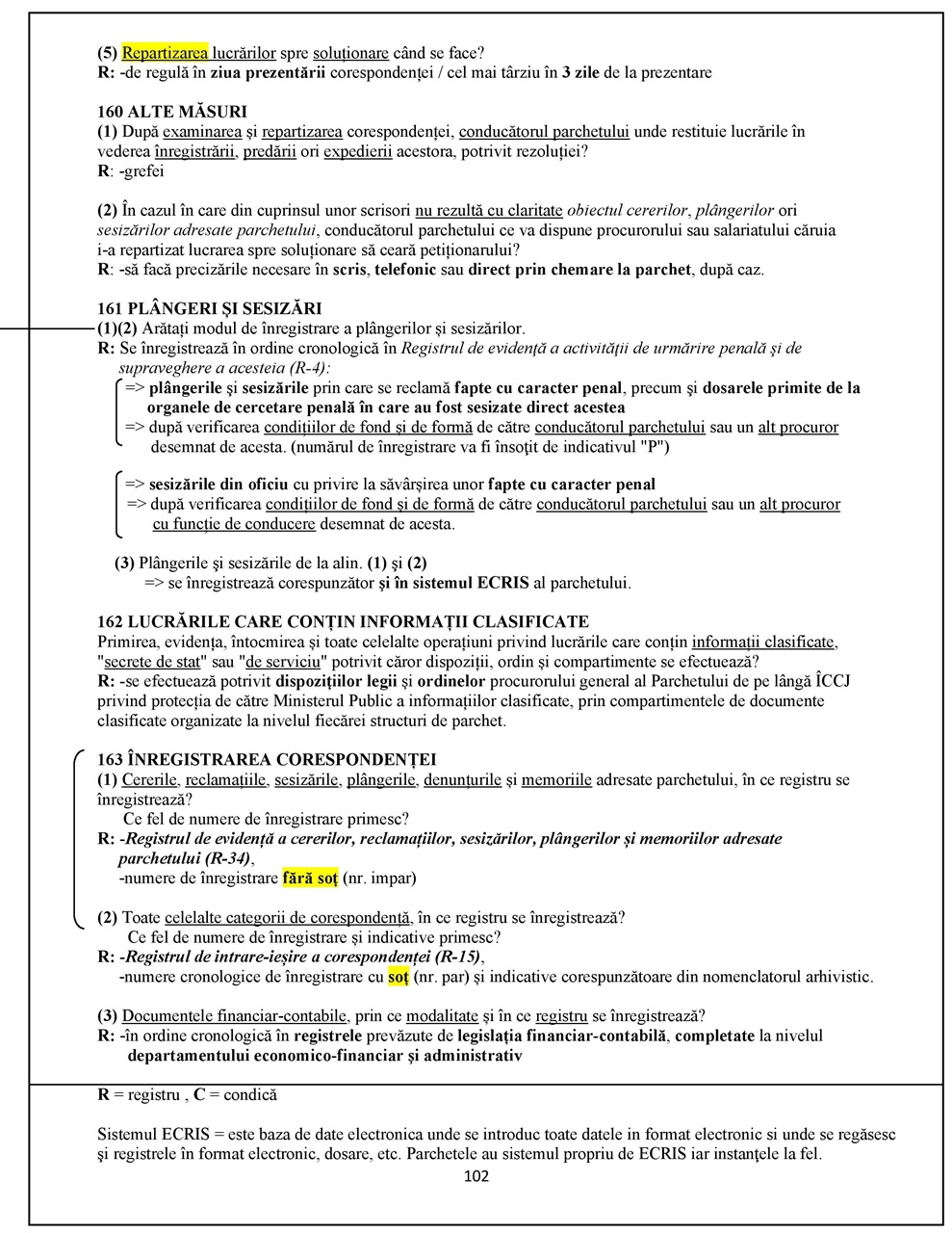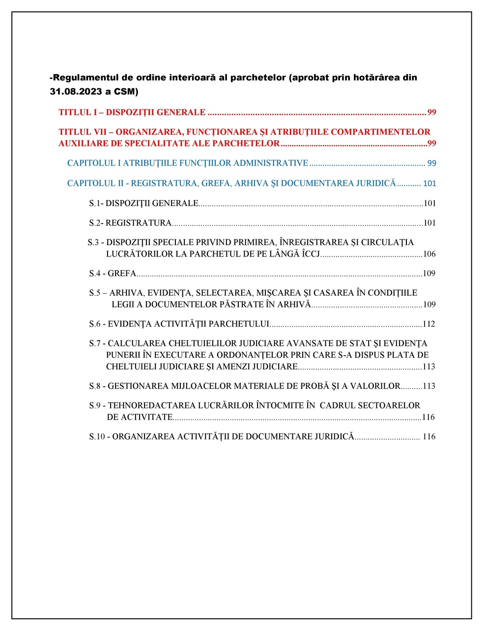 -Regulamentul de ordine interioară al parchetelor (aprobat prin hotărârea din 31.08.2023);