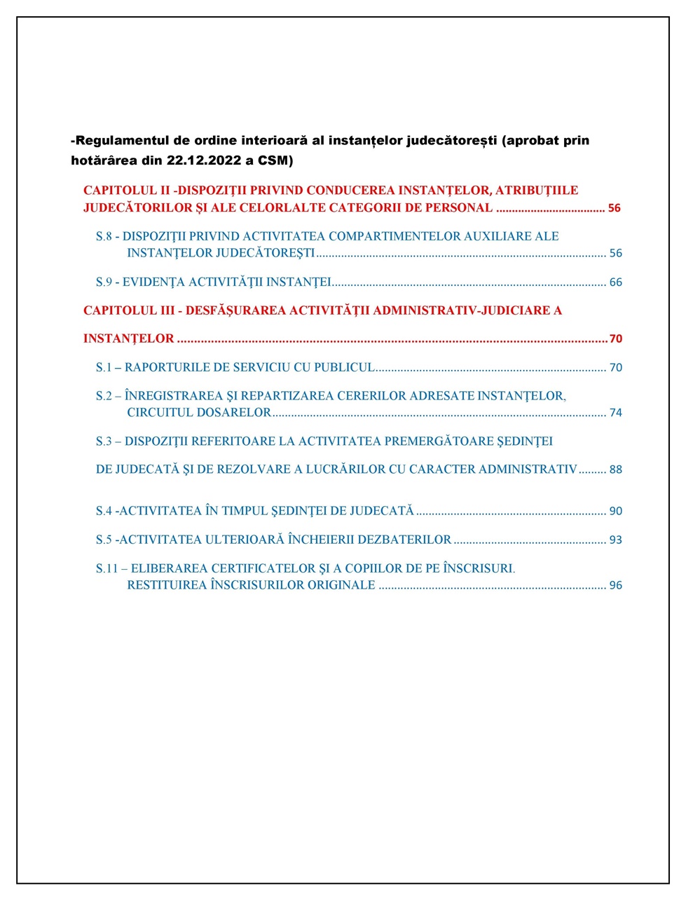 -Regulamentul de ordine interioară al instanțelor (aprobat prin horărârea din 22.12.2022);