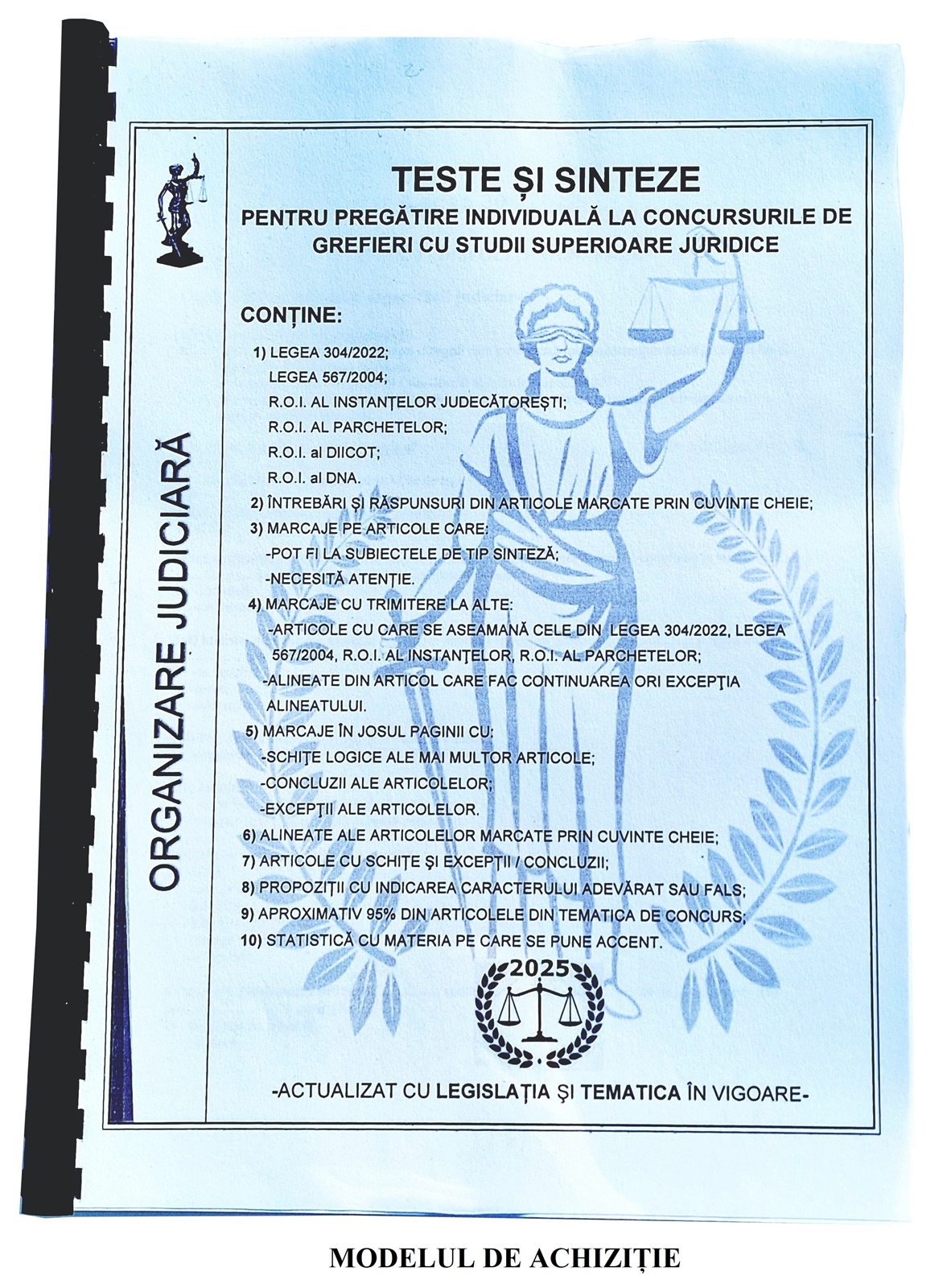 -este adaptat strict cu tematica în vigoare pentru concursurile de grefieri (direct pe post și SNG) cu studii superioare juridice;
