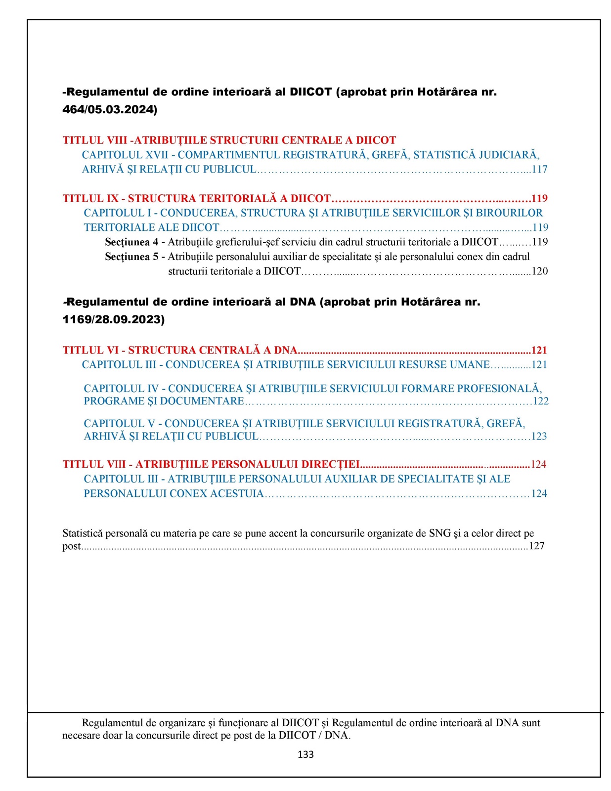 -Regulamentul de ordine interioară al DIICOT (aprobat prin hotărârea nr. 464 din 05.03.2024).