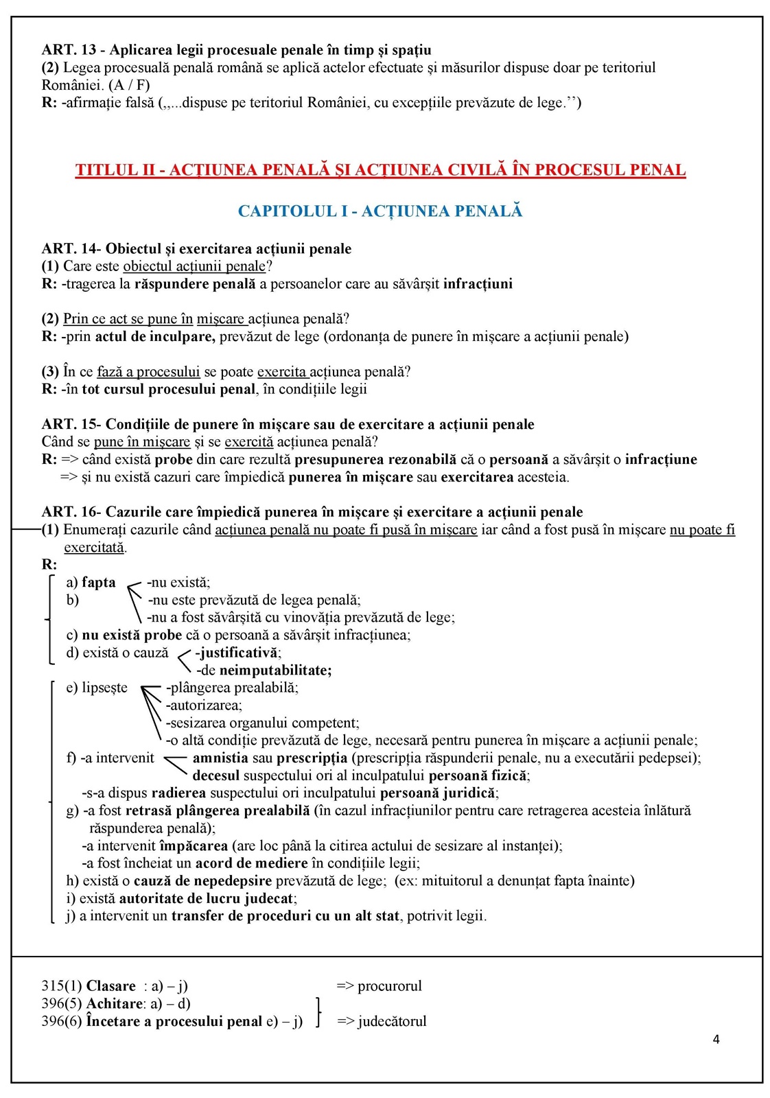6) ARTICOLE CU SCHIȚE ŞI EXCEPȚII / CONCLUZII;