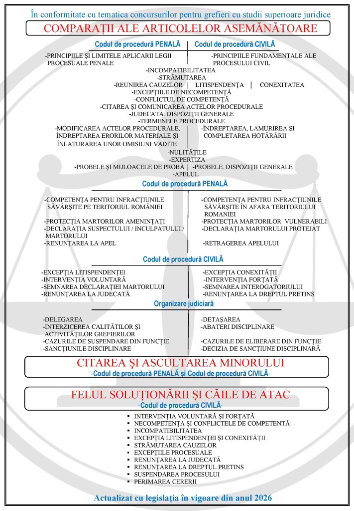 TESTE ȘI SINTEZE-COMPARAȚII ALE ARTICOLELOR ASEMĂNĂTOARE/CITAREA MINORULUI/FELUL SOLUȚIONĂRII ȘI CĂILE DE ATAC Conține 49 de pagini A4Ultima actualizare a conținutului: 02.01.2026. Exemplu continut: