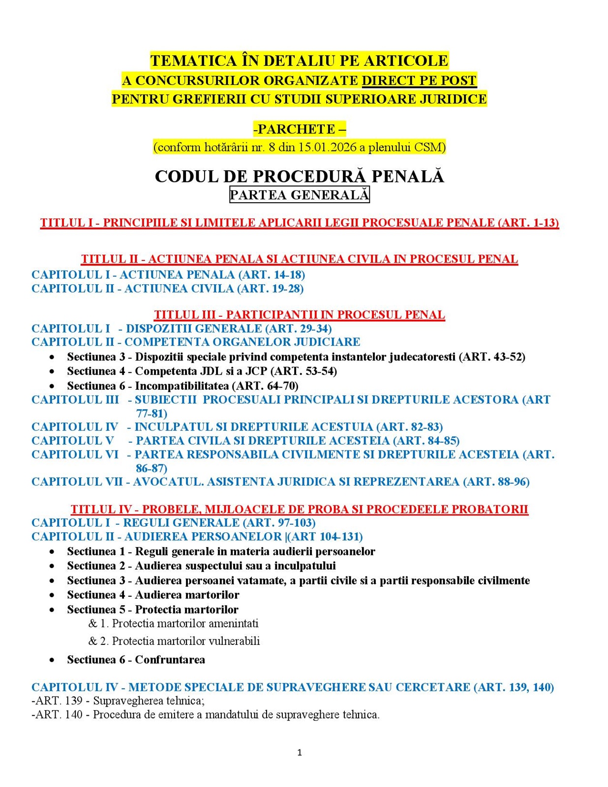TEMATICA CONCURSURILOR DIRECT PE POST ÎN DETALIU PE ARTICOLE 2026 TEMATICA CONCURSURILOR DIRECT PE POST – INSTANȚE JUDECĂTOREȘTI descarca TEMATICA CONCURSURILOR DIRECT PE POST – instante TEMATICA CONCURSURILOR DIRECT PE POST – PARCHETE descarca TEMATICA CONCURSURILOR DIRECT PE POST – PARCHETE