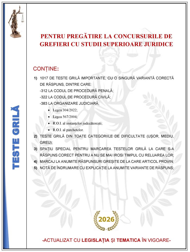 - Teste grilă din toate categoriile de dificultate (ușor, mediu, greu);